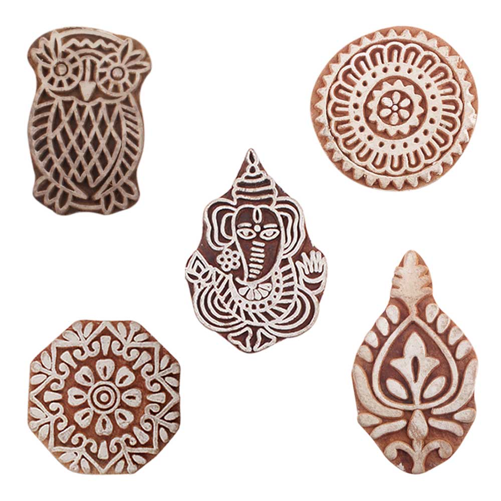 Set of 5 Piece New Mix Wooden Printing Blocks. Ideal for use on Fabric, Paper, Canvas, etc. These Blocks can be use to Print with Oil Colors, Fabric Colors, Water Colors, Acrylic Colors and Vegetable Colors.