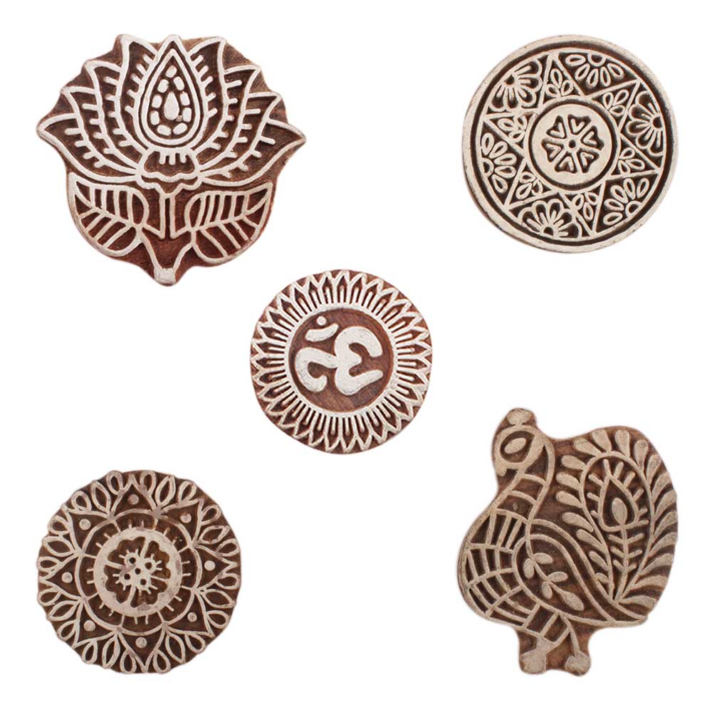 Set of 5 Piece New Mix Wooden Printing Blocks. Ideal for use on Fabric, Paper, Canvas, etc. These Blocks can be use to Print with Oil Colors, Fabric Colors, Water Colors, Acrylic Colors and Vegetable Colors.
