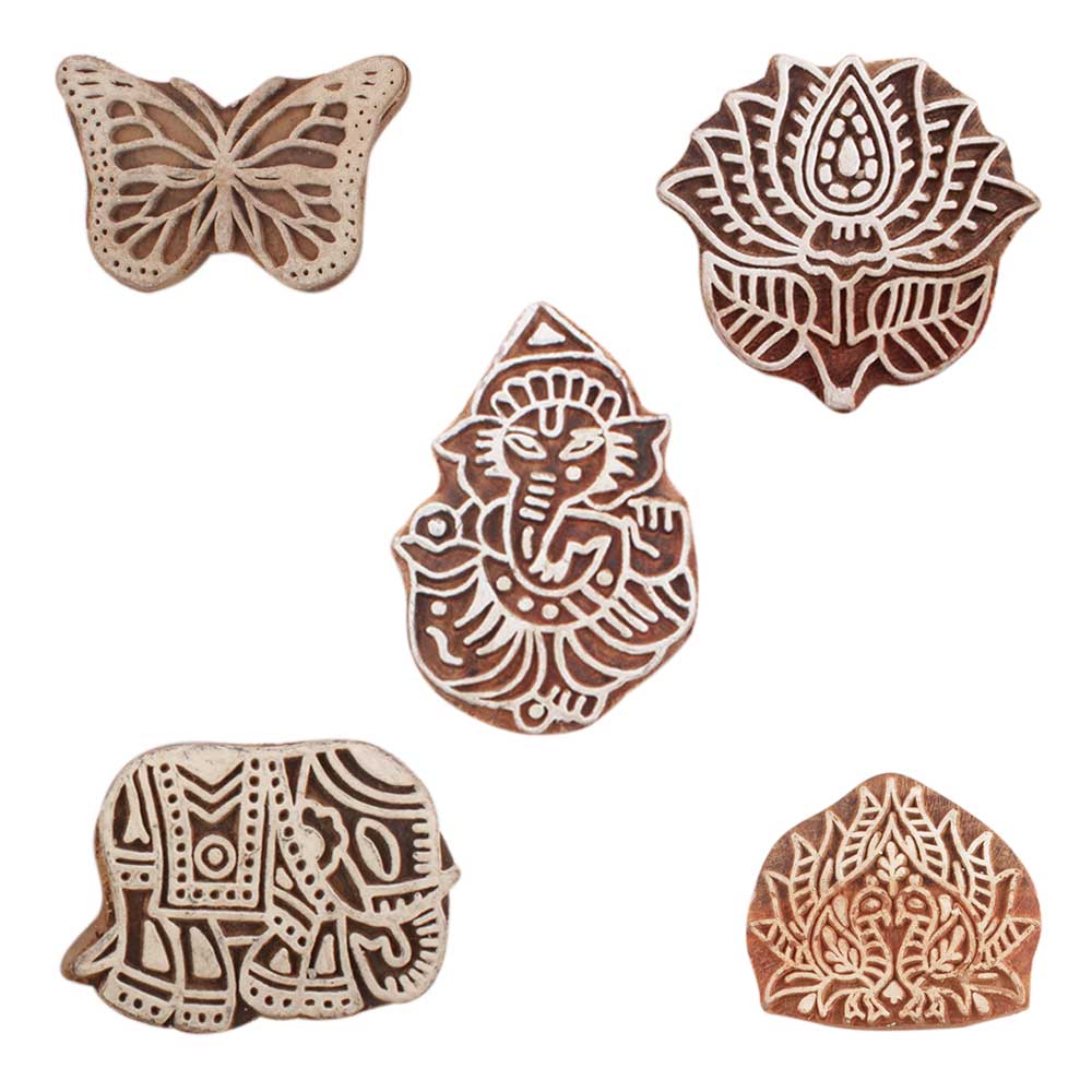 Set of 5 Piece New Mix Wooden Printing Blocks