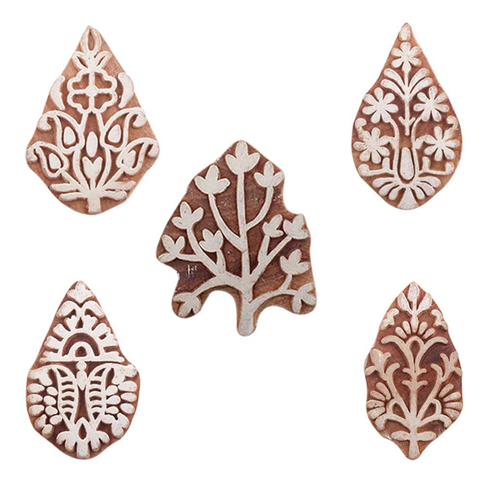 Set of 5 Piece New Mix Wooden Printing Blocks. Ideal for use on Fabric, Paper, Canvas, etc. These Blocks can be use to Print with Oil Colors, Fabric Colors, Water Colors, Acrylic Colors and Vegetable Colors.