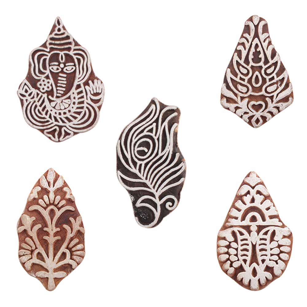 Set of 5 Piece New Mix Wooden Printing Blocks. Ideal for use on Fabric, Paper, Canvas, etc. These Blocks can be use to Print with Oil Colors, Fabric Colors, Water Colors, Acrylic Colors and Vegetable Colors.