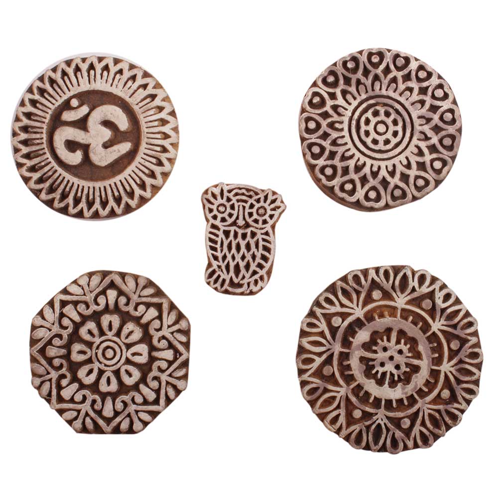 Set of 5 Piece New Mix Wooden Printing Blocks. Ideal for use on Fabric, Paper, Canvas, etc. These Blocks can be use to Print with Oil Colors, Fabric Colors, Water Colors, Acrylic Colors and Vegetable Colors.