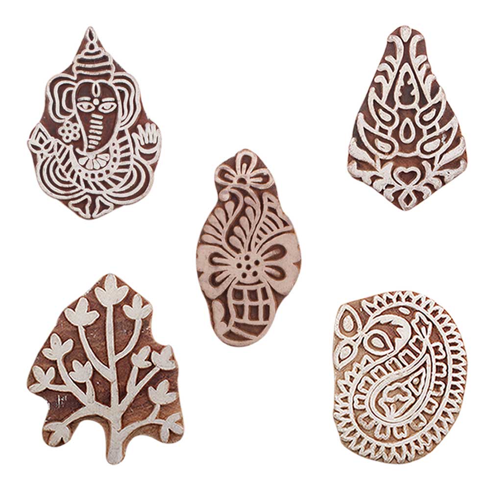 Set of 5 Piece New Mix Wooden Printing Blocks. Ideal for use on Fabric, Paper, Canvas, etc. These Blocks can be use to Print with Oil Colors, Fabric Colors, Water Colors, Acrylic Colors and Vegetable Colors.