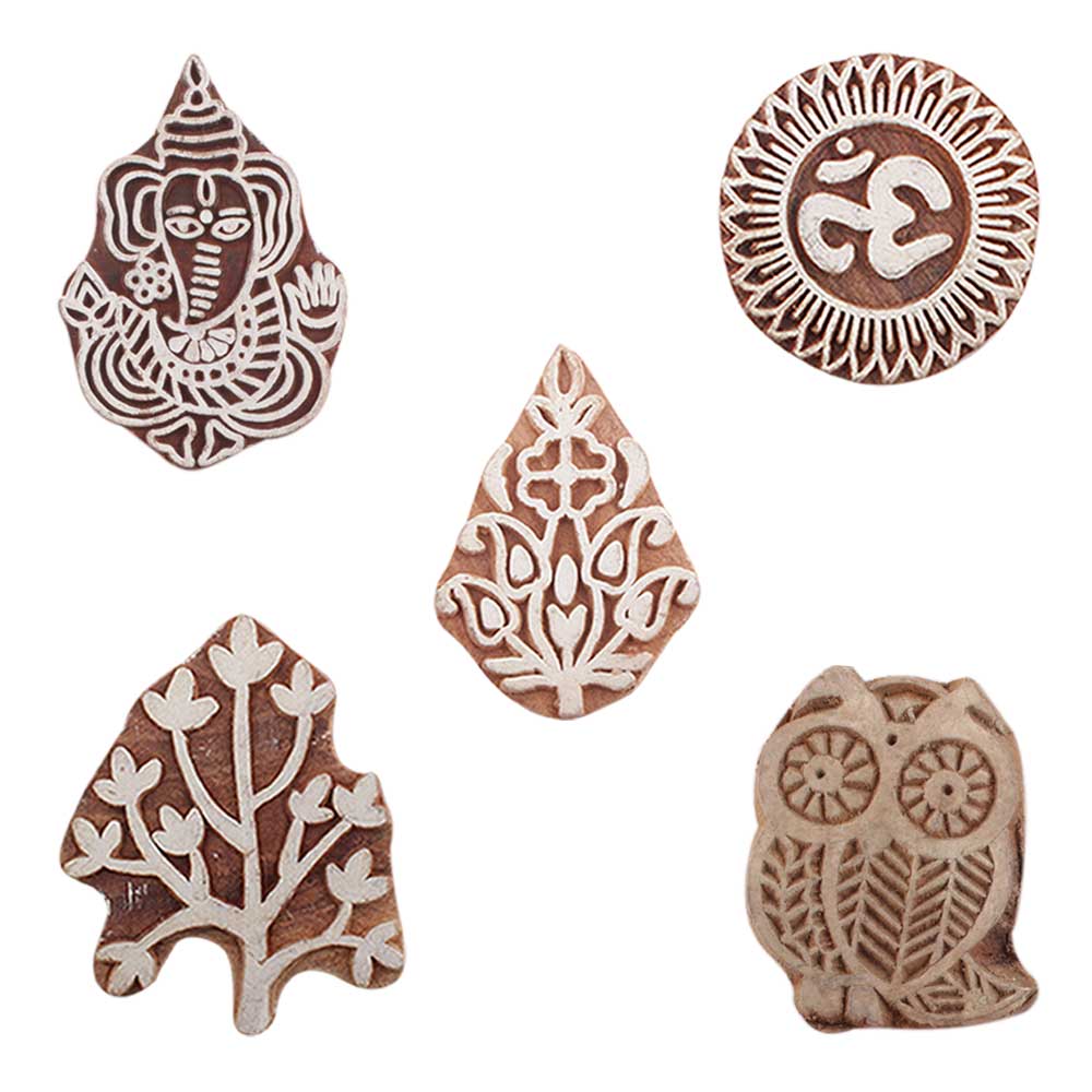 Set of 5 Piece New Mix Wooden Printing Blocks. Ideal for use on Fabric, Paper, Canvas, etc. These Blocks can be use to Print with Oil Colors, Fabric Colors, Water Colors, Acrylic Colors and Vegetable Colors.