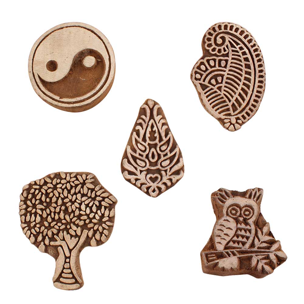 Set of 5 Piece New Mix Wooden Printing Blocks