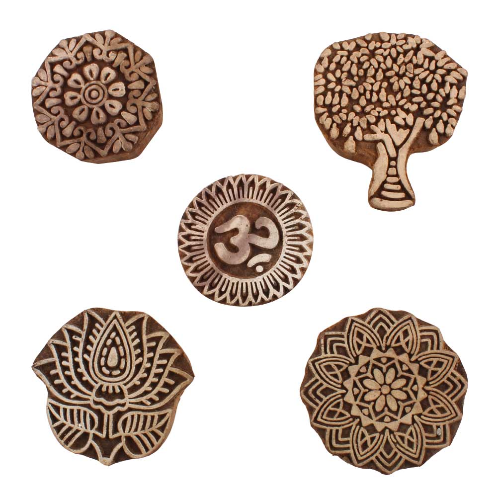 Set of 5 Piece New Mix Wooden Printing Blocks. Ideal for use on Fabric, Paper, Canvas, etc. These Blocks can be use to Print with Oil Colors, Fabric Colors, Water Colors, Acrylic Colors and Vegetable Colors.