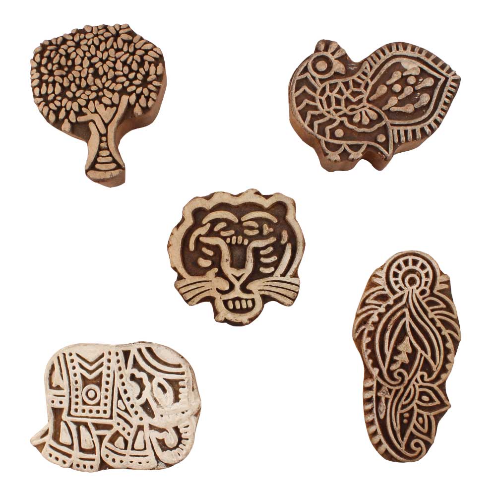 Set of 5 Piece New Mix Wooden Printing Blocks