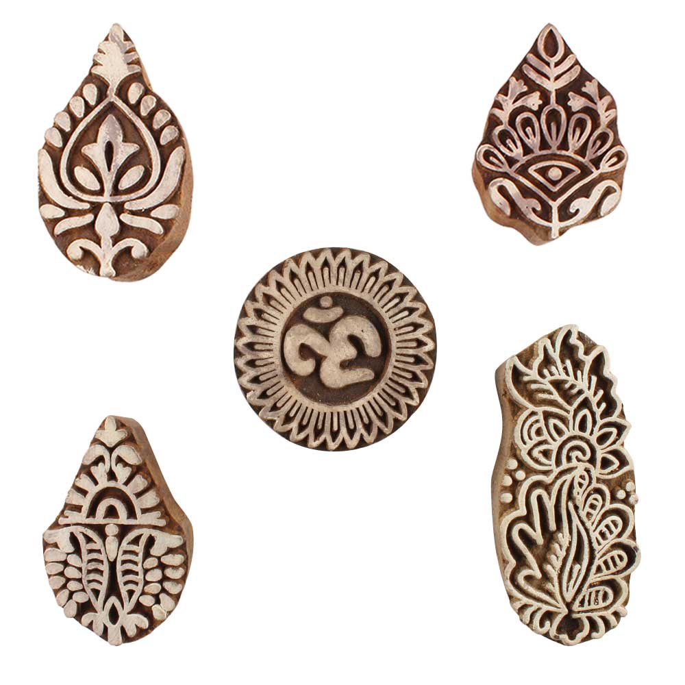 Set of 5 Piece New Mix Wooden Printing Blocks. Ideal for use on Fabric, Paper, Canvas, etc. These Blocks can be use to Print with Oil Colors, Fabric Colors, Water Colors, Acrylic Colors and Vegetable Colors.
