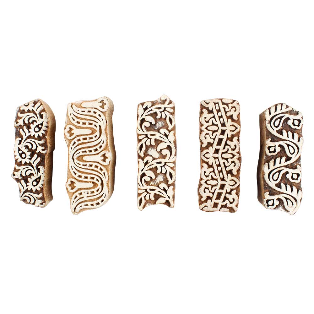 Set of 5 Piece New Mix Wooden Printing Blocks. Ideal for use on Fabric, Paper, Canvas, etc. These Blocks can be use to Print with Oil Colors, Fabric Colors, Water Colors, Acrylic Colors and Vegetable Colors.