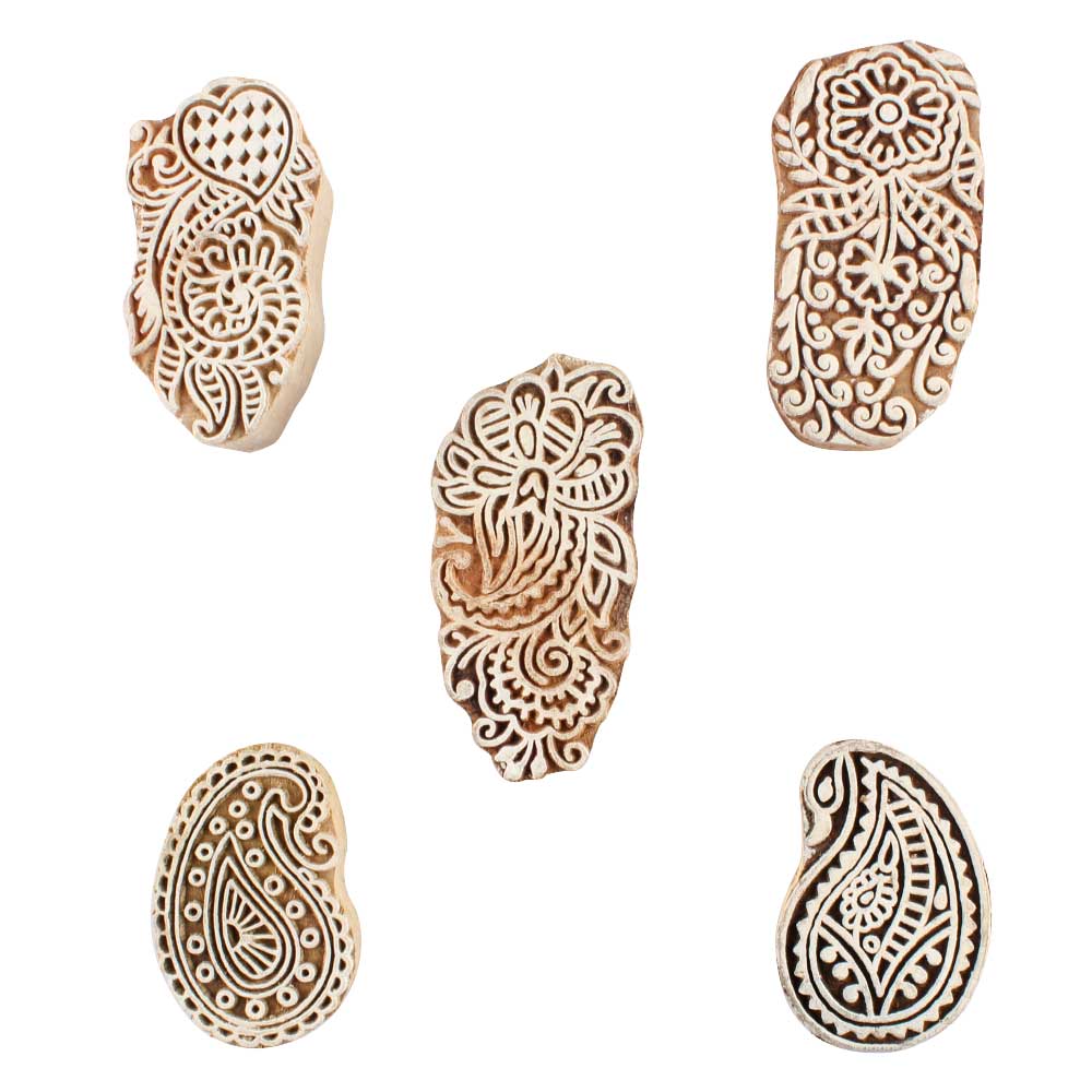Set of 5 Piece New Mix Wooden Printing Blocks. Ideal for use on Fabric, Paper, Canvas, etc. These Blocks can be use to Print with Oil Colors, Fabric Colors, Water Colors, Acrylic Colors and Vegetable Colors.