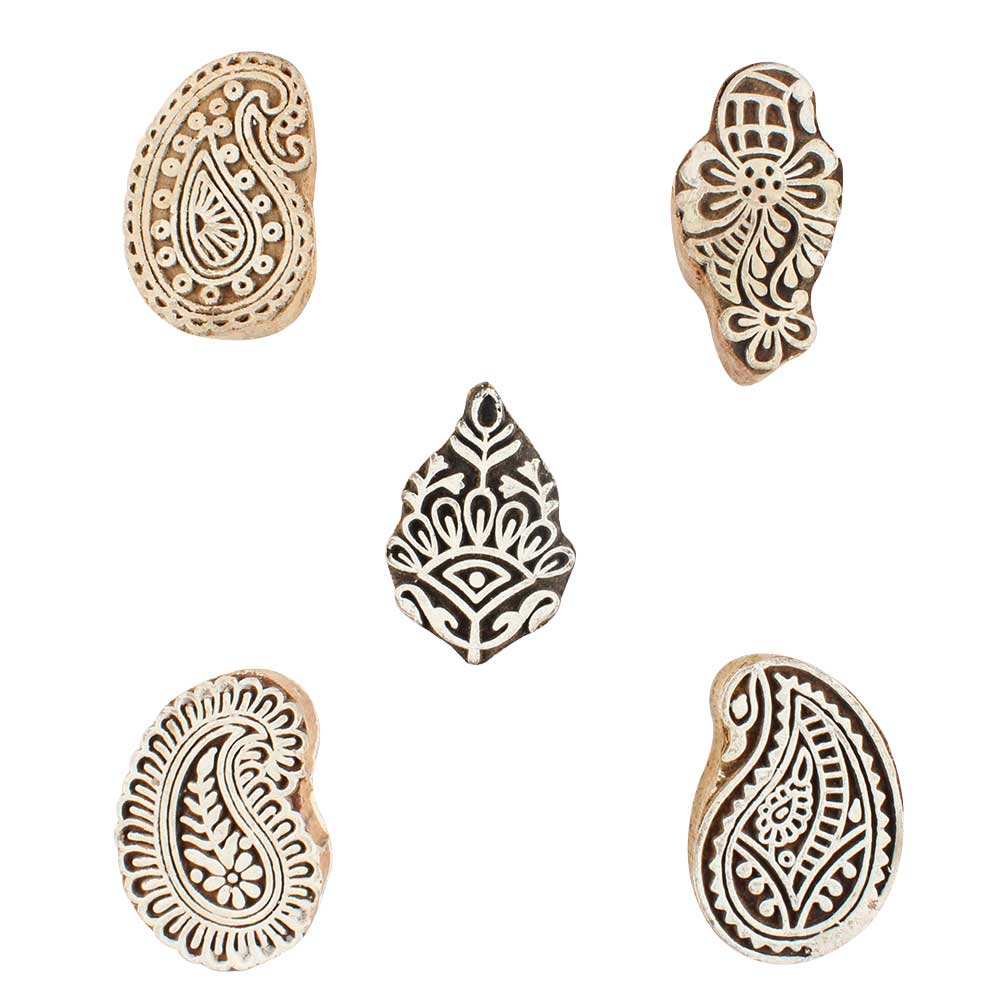 Set of 5 Piece New Mix Wooden Printing Blocks. Ideal for use on Fabric, Paper, Canvas, etc. These Blocks can be use to Print with Oil Colors, Fabric Colors, Water Colors, Acrylic Colors and Vegetable Colors.
