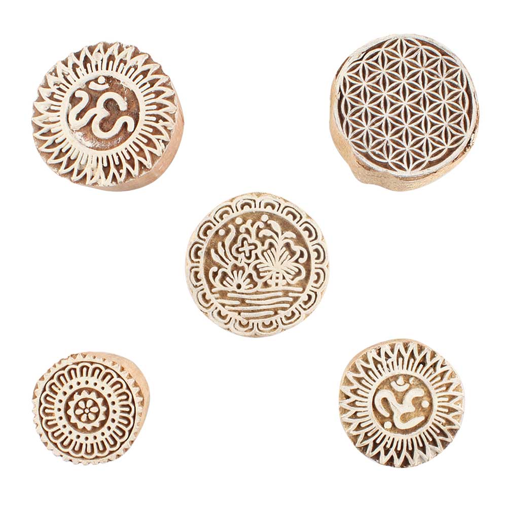 Set of 5 Piece New Mix Wooden Printing Blocks. Ideal for use on Fabric, Paper, Canvas, etc. These Blocks can be use to Print with Oil Colors, Fabric Colors, Water Colors, Acrylic Colors and Vegetable Colors.