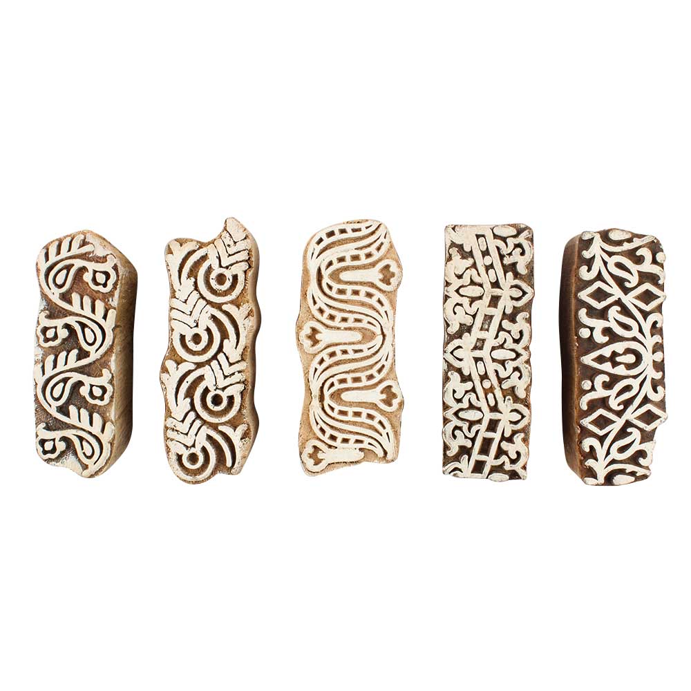 Set of 5 Piece New Mix Wooden Printing Blocks. Ideal for use on Fabric, Paper, Canvas, etc. These Blocks can be use to Print with Oil Colors, Fabric Colors, Water Colors, Acrylic Colors and Vegetable Colors.