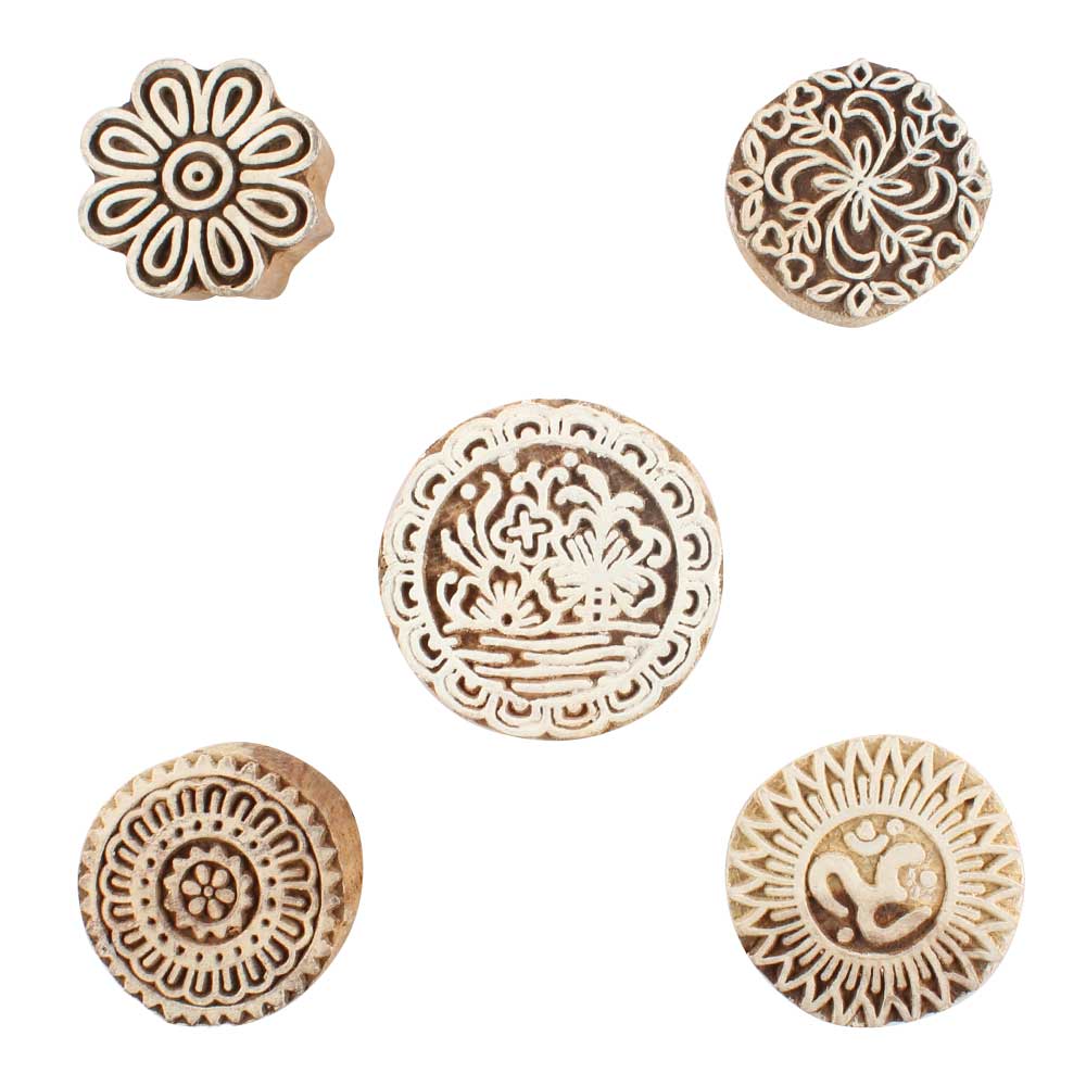 Set of 5 Piece New Mix Wooden Printing Blocks. Ideal for use on Fabric, Paper, Canvas, etc. These Blocks can be use to Print with Oil Colors, Fabric Colors, Water Colors, Acrylic Colors and Vegetable Colors.