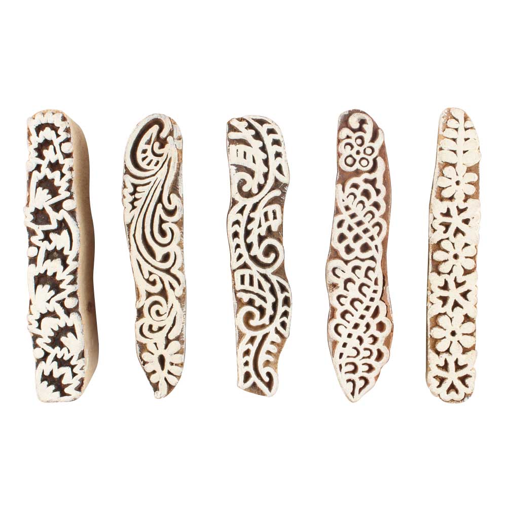 Set of 5 Piece New Mix Wooden Printing Blocks. Ideal for use on Fabric, Paper, Canvas, etc. These Blocks can be use to Print with Oil Colors, Fabric Colors, Water Colors, Acrylic Colors and Vegetable Colors.
