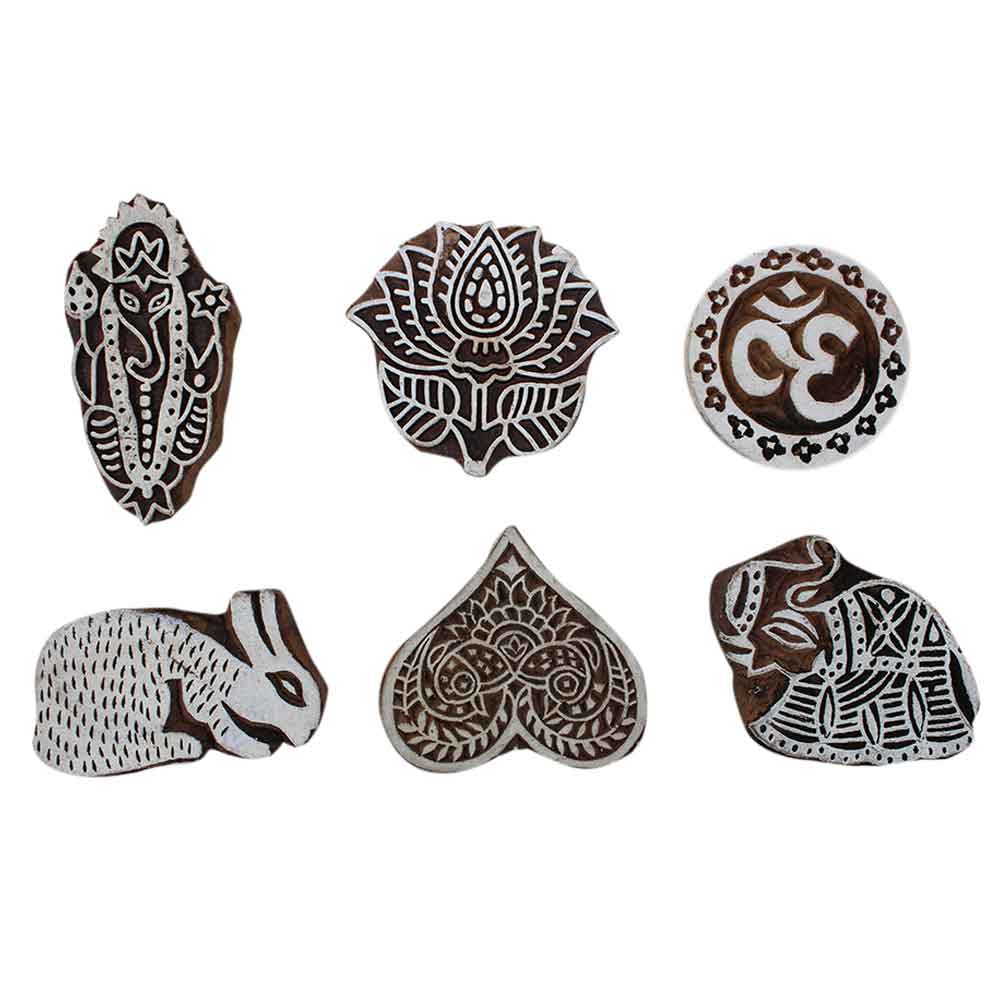Set of 6 Piece New Mix Wooden Printing Block. Ideal for Using on Fabric, Paper, Canvas, etc. These Blocks can be use to Print with Oil Colors, Fabric Colors, Water Colors, Acrylic Colors and Vegetable Colors.
