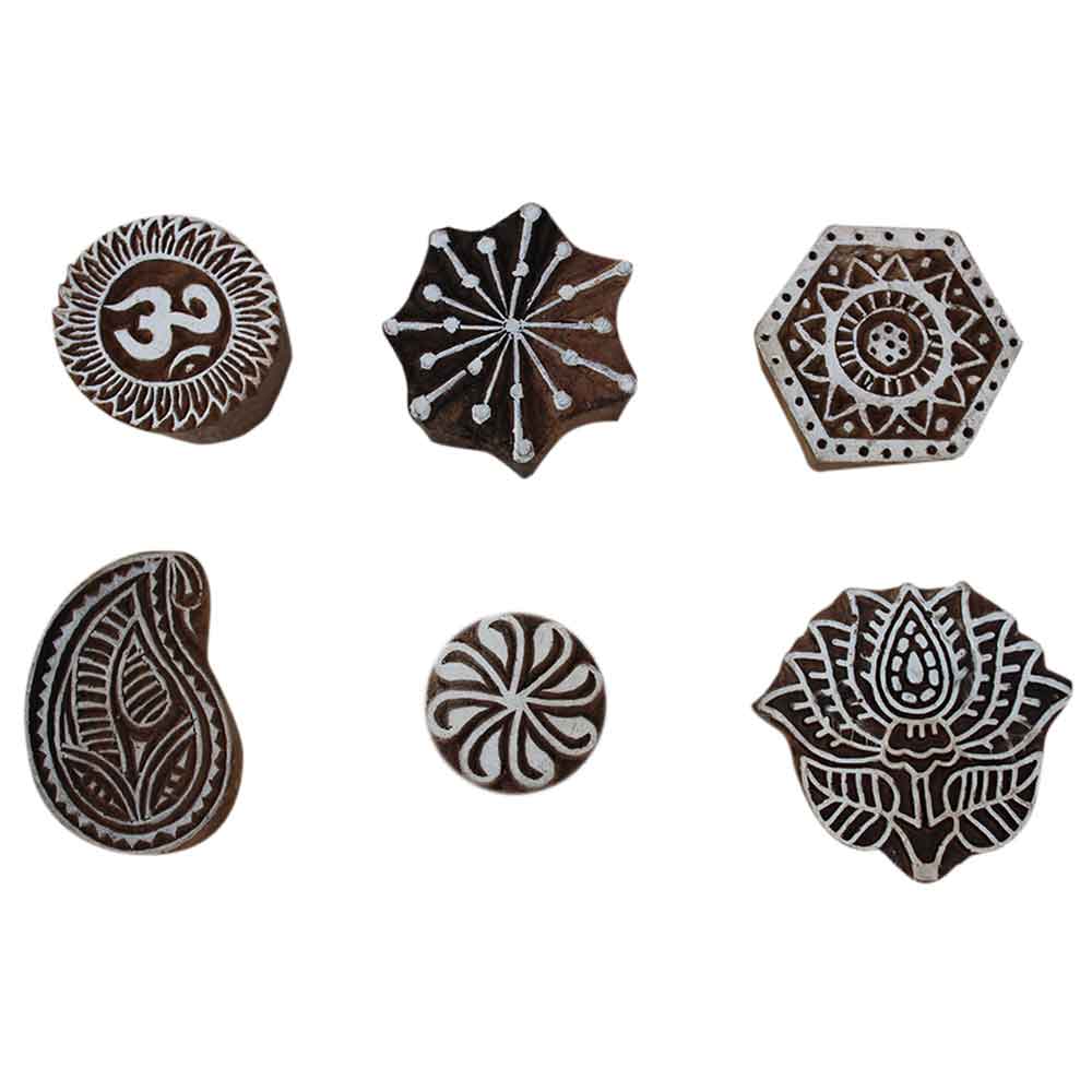 Set of 6 Piece New Mix Wooden Printing Block. Ideal for Using on Fabric, Paper, Canvas, etc. These Blocks can be use to Print with Oil Colors, Fabric Colors, Water Colors, Acrylic Colors and Vegetable Colors.