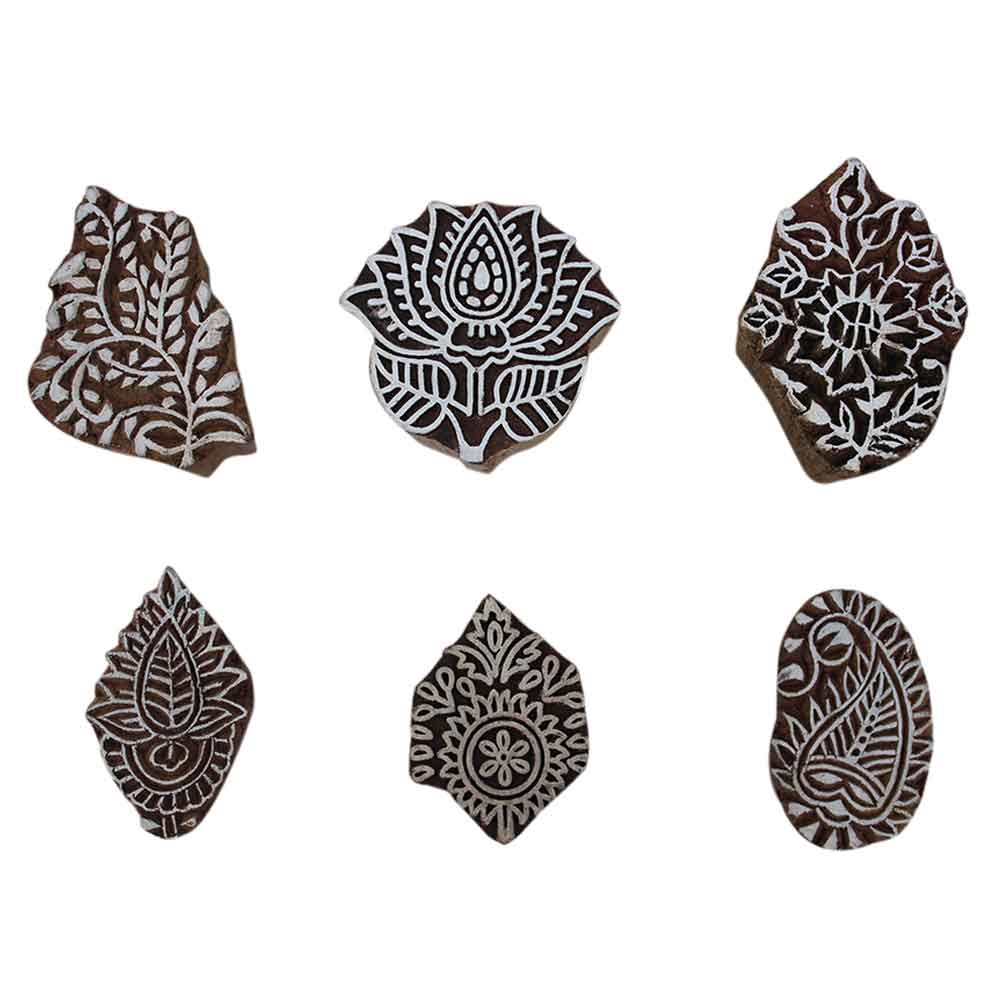 Set of 6 Piece New Mix Wooden Printing Block. Ideal for Using on Fabric, Paper, Canvas, etc. These Blocks can be use to Print with Oil Colors, Fabric Colors, Water Colors, Acrylic Colors and Vegetable Colors.