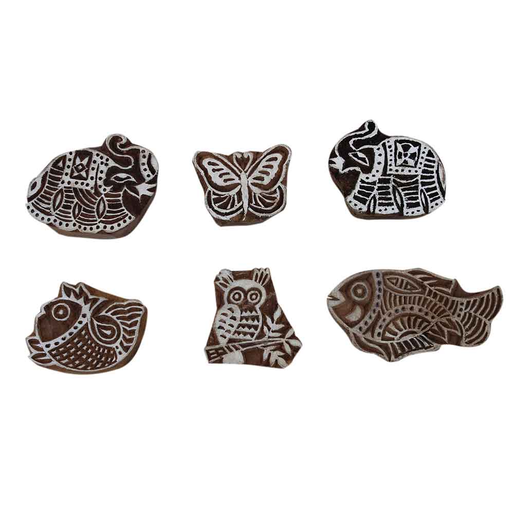 Set of 6 Piece New Mix Wooden Printing Block. Ideal for Using on Fabric, Paper, Canvas, etc. These Blocks can be use to Print with Oil Colors, Fabric Colors, Water Colors, Acrylic Colors and Vegetable Colors.