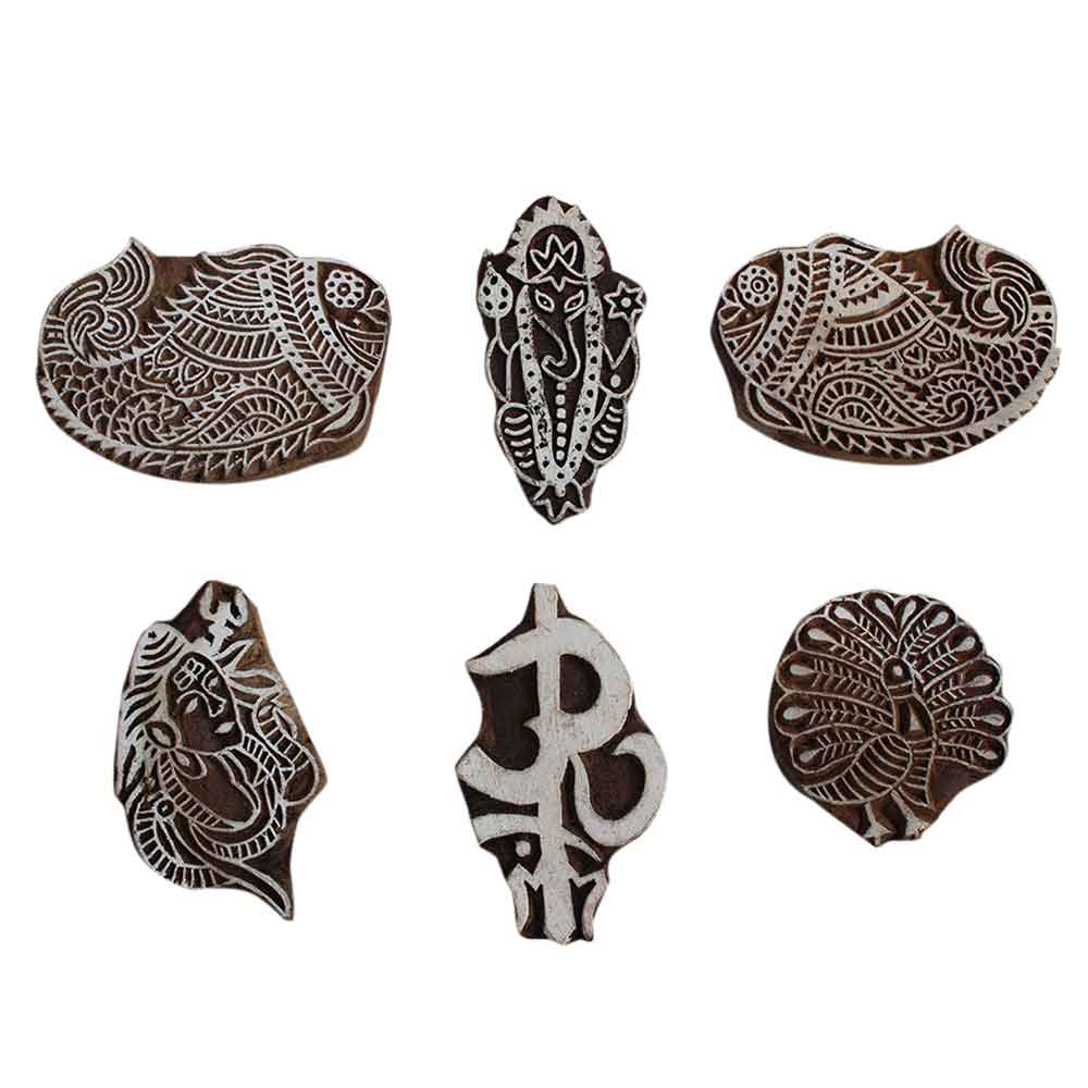 Set of 6 Piece New Mix Wooden Printing Block. Ideal for Using on Fabric, Paper, Canvas, etc. These Blocks can be use to Print with Oil Colors, Fabric Colors, Water Colors, Acrylic Colors and Vegetable Colors.