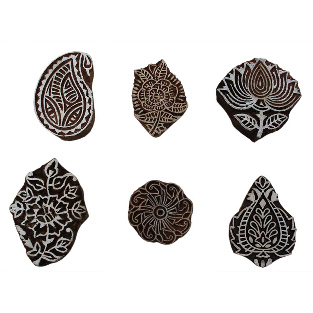 Set of 6 Piece New Mix Wooden Printing Block. Ideal for Using on Fabric, Paper, Canvas, etc. These Blocks can be use to Print with Oil Colors, Fabric Colors, Water Colors, Acrylic Colors and Vegetable Colors.
