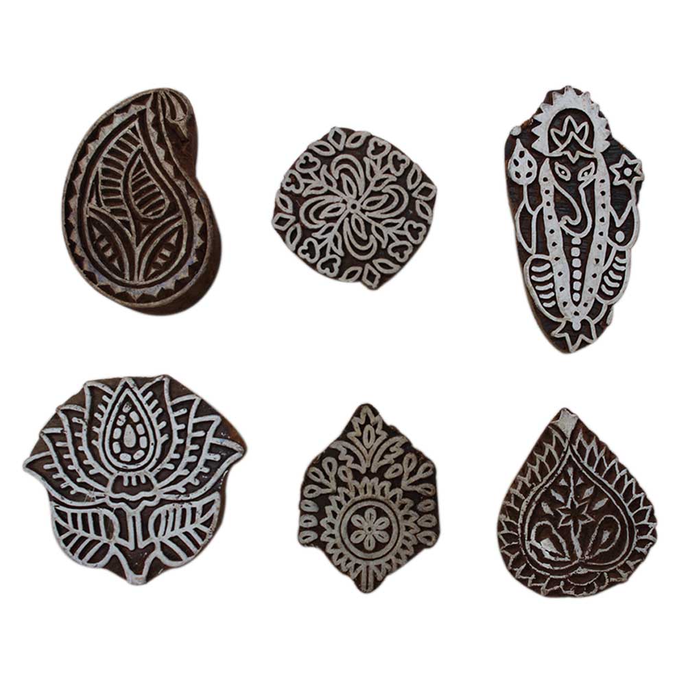 Set of 6 Piece New Mix Wooden Printing Block. Ideal for Using on Fabric, Paper, Canvas, etc. These Blocks can be use to Print with Oil Colors, Fabric Colors, Water Colors, Acrylic Colors and Vegetable Colors.