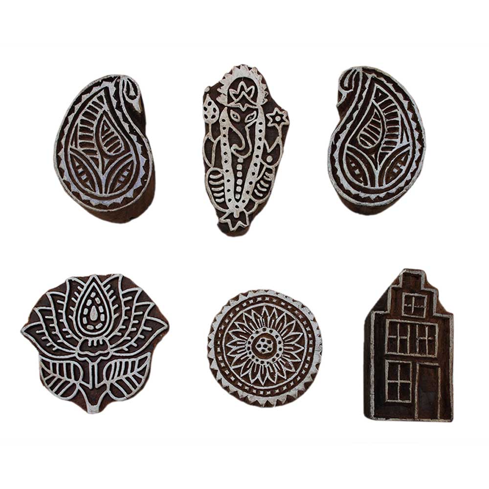 Set of 6 Piece New Mix Wooden Printing Block. Ideal for Using on Fabric, Paper, Canvas, etc. These Blocks can be use to Print with Oil Colors, Fabric Colors, Water Colors, Acrylic Colors and Vegetable Colors.