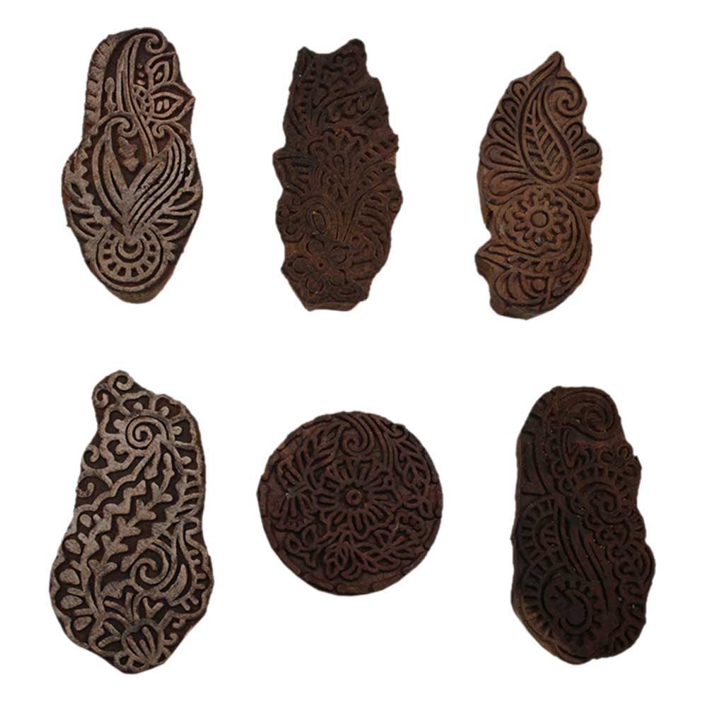 Set of 6 Piece New Mix Wooden Printing Block. Ideal for Using on Fabric, Paper, Canvas, etc. These Blocks can be use to Print with Oil Colors, Fabric Colors, Water Colors, Acrylic Colors and Vegetable Colors.