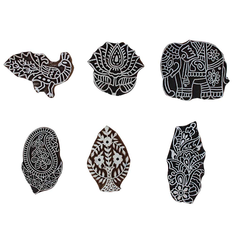 Set of 6 Piece New Mix Wooden Printing Block. Ideal for Using on Fabric, Paper, Canvas, etc. These Blocks can be use to Print with Oil Colors, Fabric Colors, Water Colors, Acrylic Colors and Vegetable Colors.