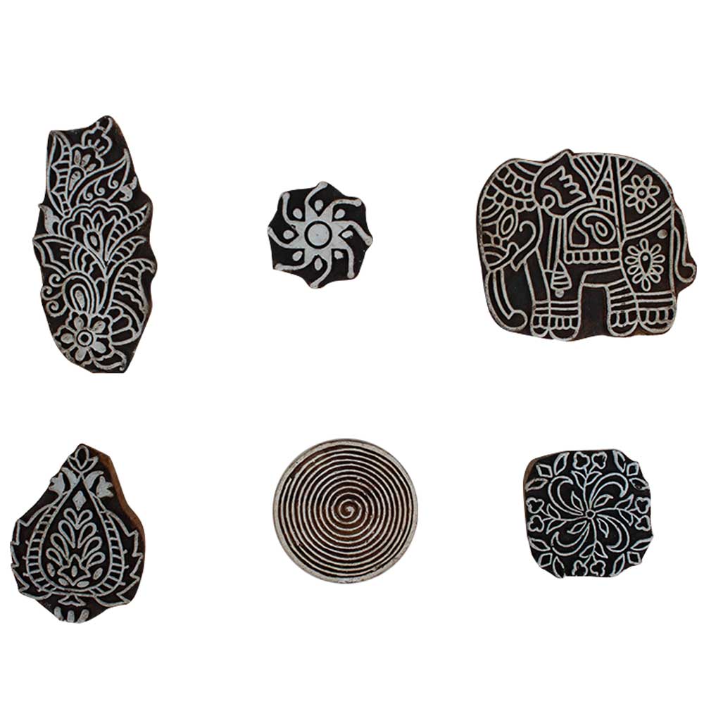 Set of 6 Piece New Mix Wooden Printing Block. Ideal for Using on Fabric, Paper, Canvas, etc. These Blocks can be use to Print with Oil Colors, Fabric Colors, Water Colors, Acrylic Colors and Vegetable Colors.