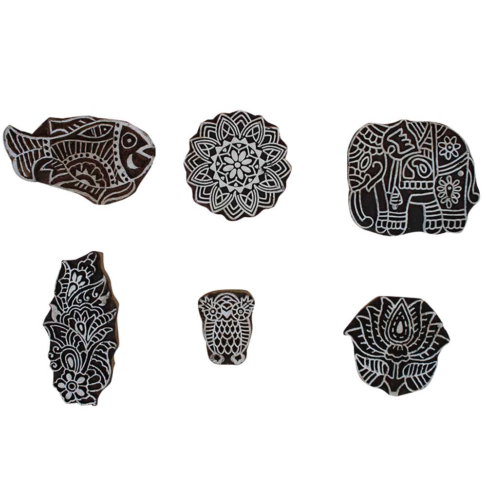 Set of 6 Piece New Mix Wooden Printing Block. Ideal for Using on Fabric, Paper, Canvas, etc. These Blocks can be use to Print with Oil Colors, Fabric Colors, Water Colors, Acrylic Colors and Vegetable Colors.