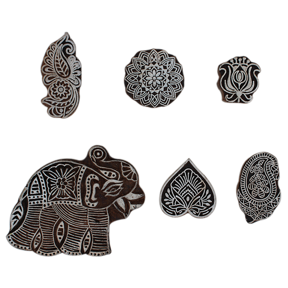 Set of 6 Piece New Mix Wooden Printing Block. Ideal for Using on Fabric, Paper, Canvas, etc. These Blocks can be use to Print with Oil Colors, Fabric Colors, Water Colors, Acrylic Colors and Vegetable Colors.