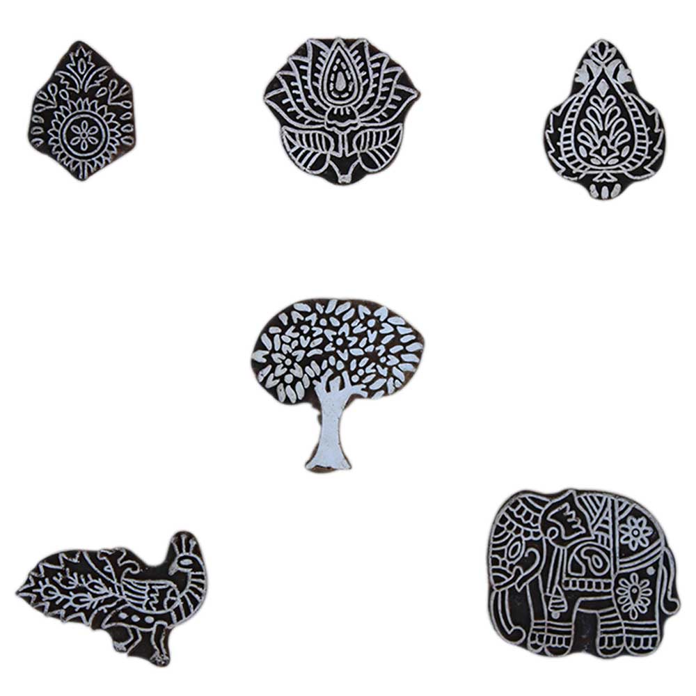 Set of 6 Piece New Mix Wooden Printing Block. Ideal for Using on Fabric, Paper, Canvas, etc. These Blocks can be use to Print with Oil Colors, Fabric Colors, Water Colors, Acrylic Colors and Vegetable Colors.
