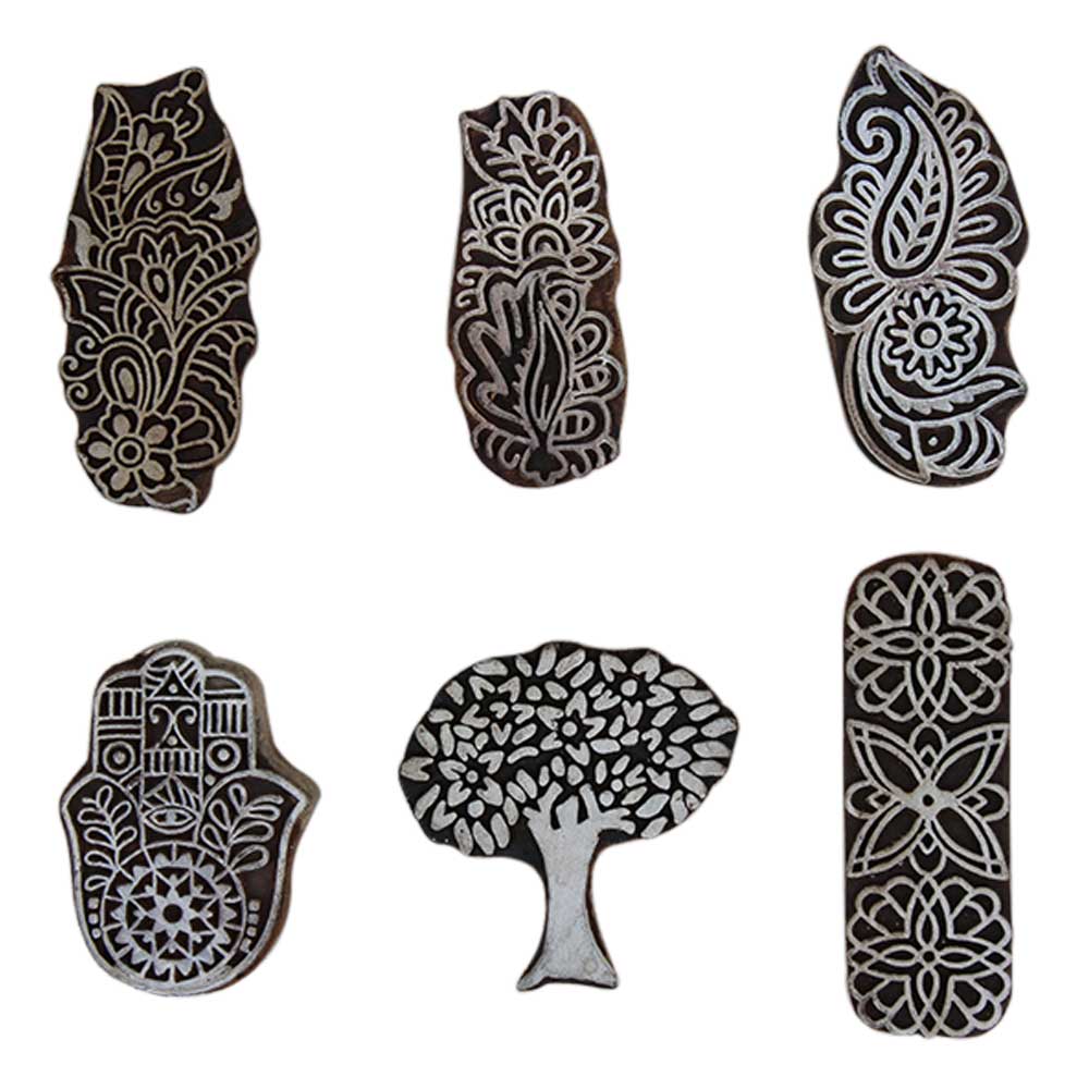 Set of 6 Piece New Mix Wooden Printing Block. Ideal for Using on Fabric, Paper, Canvas, etc. These Blocks can be use to Print with Oil Colors, Fabric Colors, Water Colors, Acrylic Colors and Vegetable Colors.