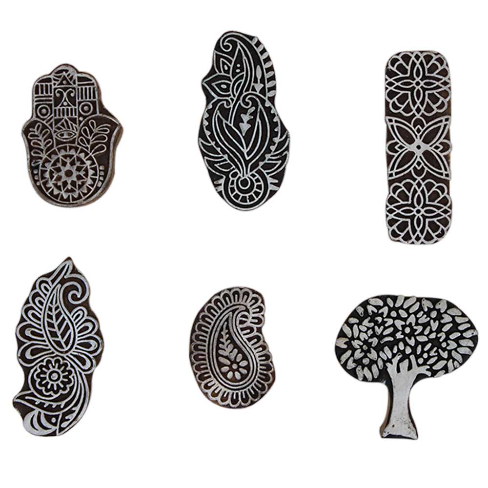 Set of 6 Piece New Mix Wooden Printing Block. Ideal for Using on Fabric, Paper, Canvas, etc. These Blocks can be use to Print with Oil Colors, Fabric Colors, Water Colors, Acrylic Colors and Vegetable Colors.