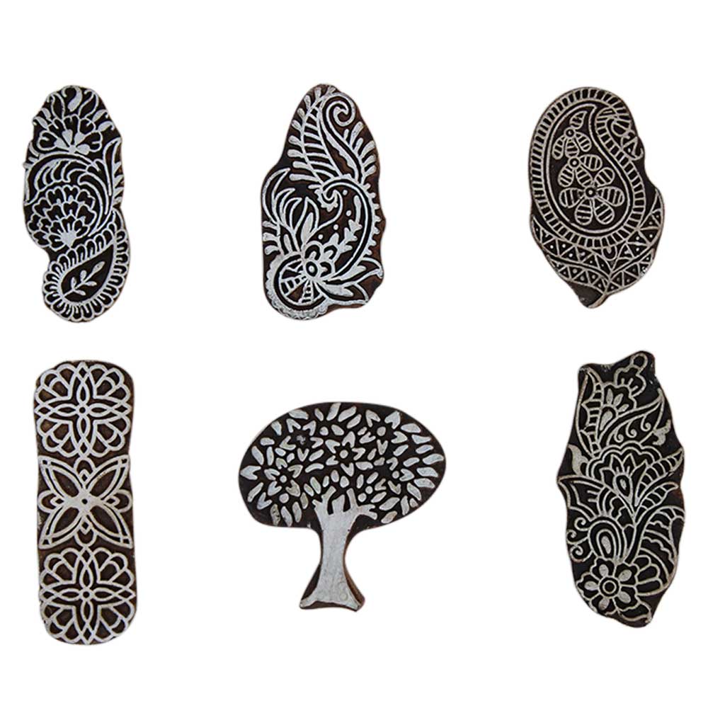 Set of 6 Piece New Mix Wooden Printing Block. Ideal for Using on Fabric, Paper, Canvas, etc. These Blocks can be use to Print with Oil Colors, Fabric Colors, Water Colors, Acrylic Colors and Vegetable Colors.