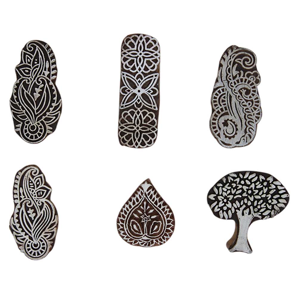 Set of 6 Piece New Mix Wooden Printing Block. Ideal for Using on Fabric, Paper, Canvas, etc. These Blocks can be use to Print with Oil Colors, Fabric Colors, Water Colors, Acrylic Colors and Vegetable Colors.