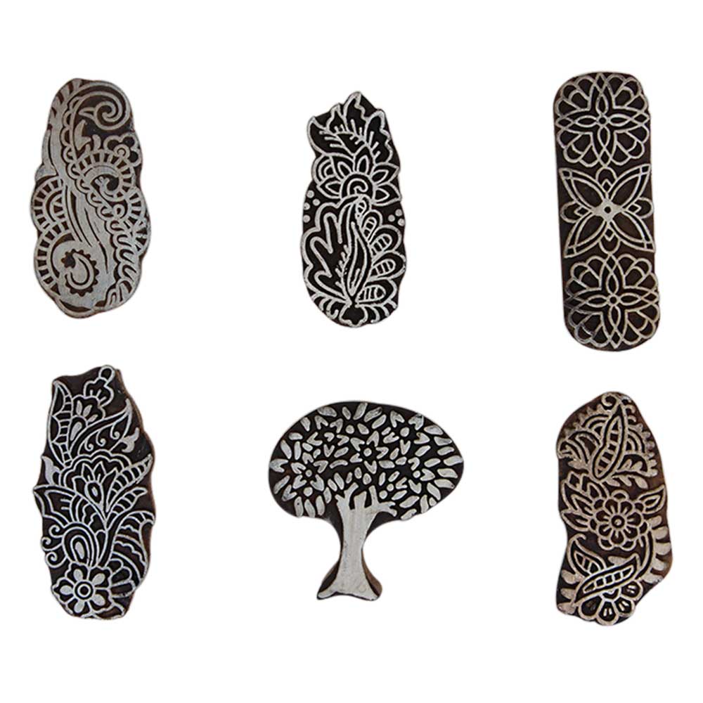 Set of 6 Piece New Mix Wooden Printing Block. Ideal for Using on Fabric, Paper, Canvas, etc. These Blocks can be use to Print with Oil Colors, Fabric Colors, Water Colors, Acrylic Colors and Vegetable Colors.