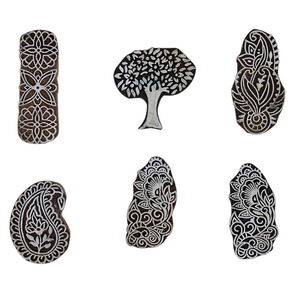 Set of 6 Piece New Mix Wooden Printing Block. Ideal for Using on Fabric, Paper, Canvas, etc. These Blocks can be use to Print with Oil Colors, Fabric Colors, Water Colors, Acrylic Colors and Vegetable Colors.