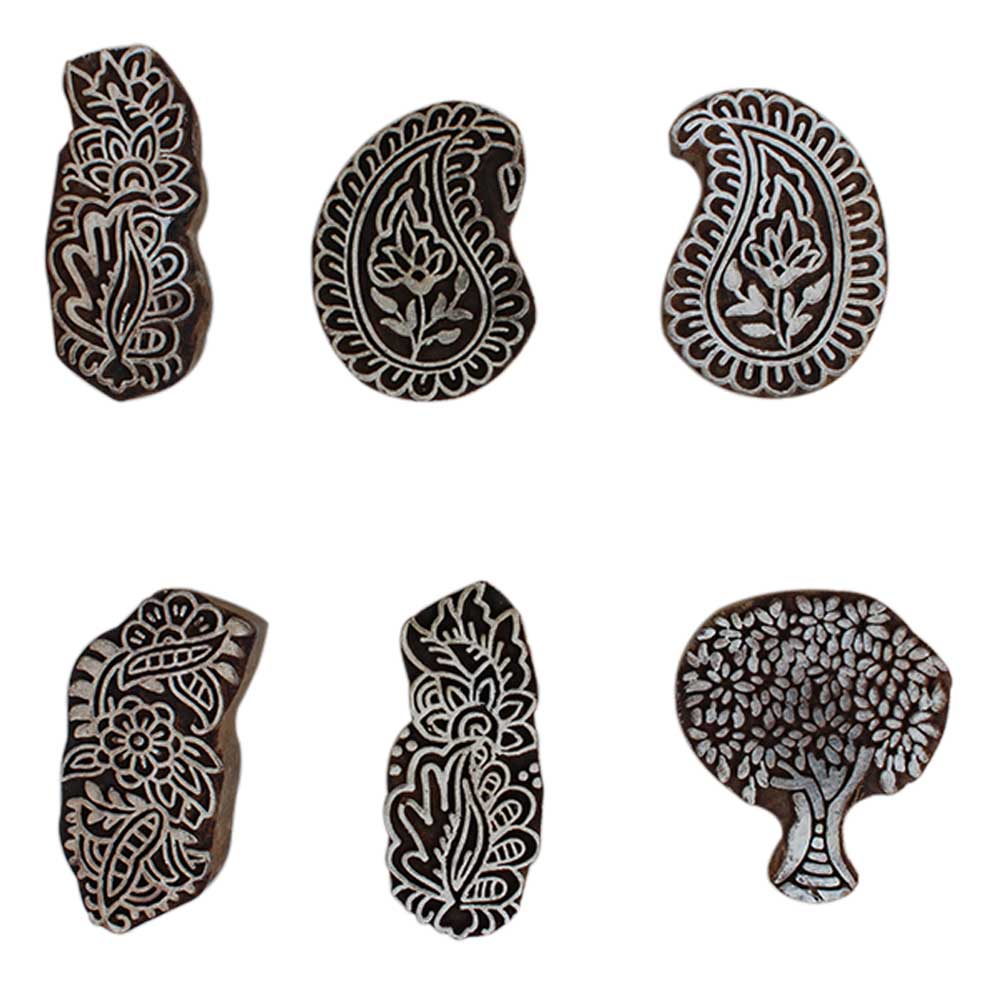 Set of 6 Piece New Mix Wooden Printing Block. Ideal for Using on Fabric, Paper, Canvas, etc. These Blocks can be use to Print with Oil Colors, Fabric Colors, Water Colors, Acrylic Colors and Vegetable Colors.