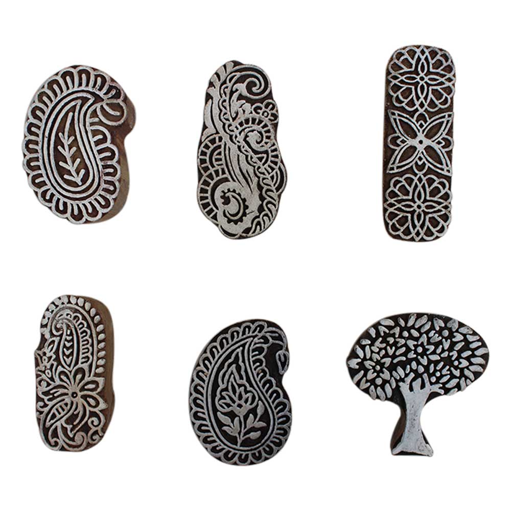 Set of 6 Piece New Mix Wooden Printing Block. Ideal for Using on Fabric, Paper, Canvas, etc. These Blocks can be use to Print with Oil Colors, Fabric Colors, Water Colors, Acrylic Colors and Vegetable Colors.