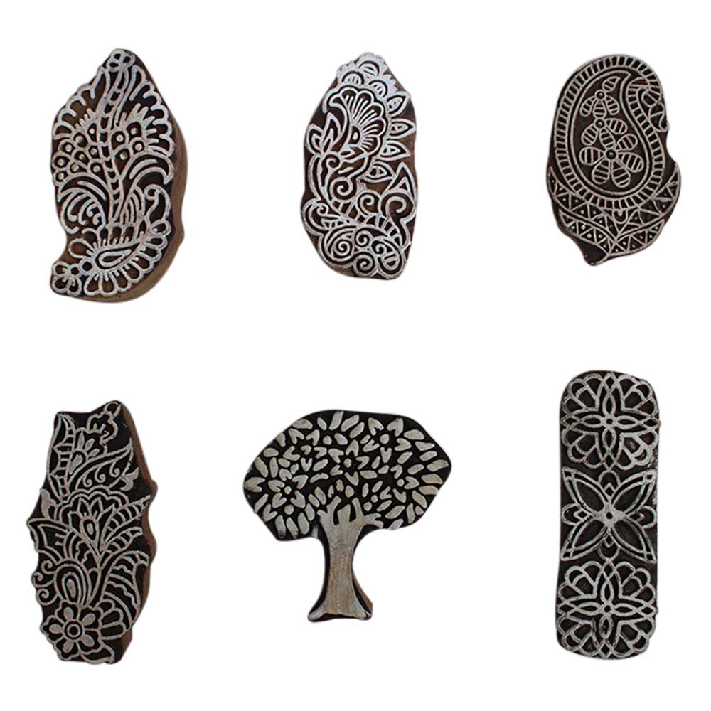 Set of 6 Piece New Mix Wooden Printing Block. Ideal for Using on Fabric, Paper, Canvas, etc. These Blocks can be use to Print with Oil Colors, Fabric Colors, Water Colors, Acrylic Colors and Vegetable Colors.