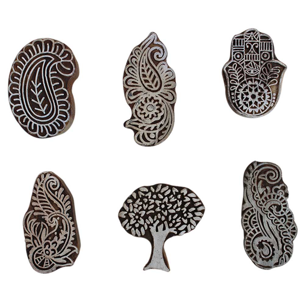 Set of 6 Piece New Mix Wooden Printing Block. Ideal for Using on Fabric, Paper, Canvas, etc. These Blocks can be use to Print with Oil Colors, Fabric Colors, Water Colors, Acrylic Colors and Vegetable Colors.