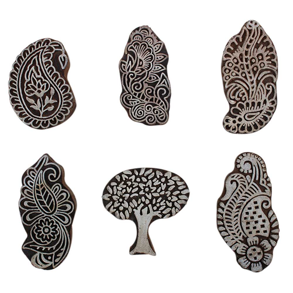 Set of 6 Piece New Mix Wooden Printing Block. Ideal for Using on Fabric, Paper, Canvas, etc. These Blocks can be use to Print with Oil Colors, Fabric Colors, Water Colors, Acrylic Colors and Vegetable Colors.