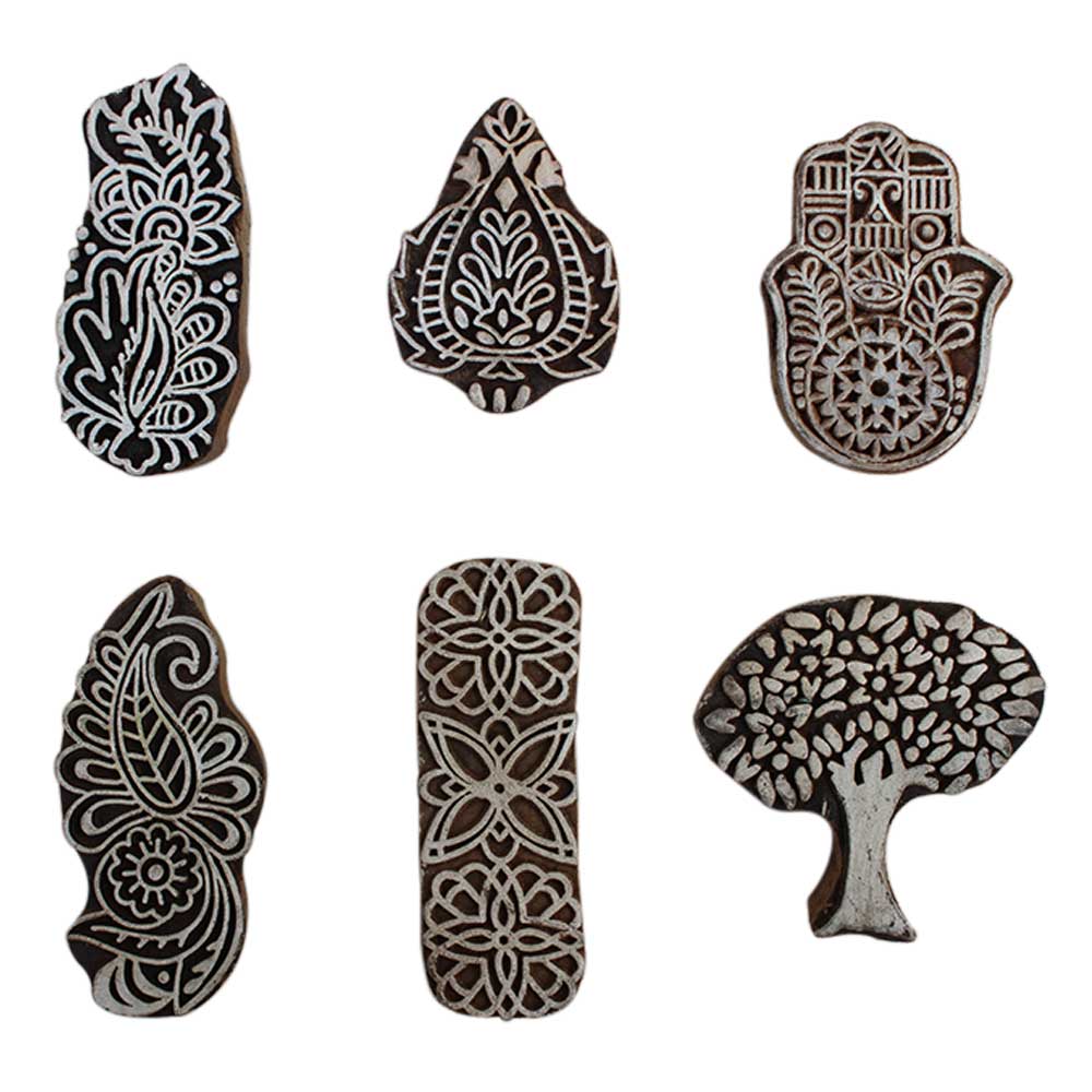 Set of 6 Piece New Mix Wooden Printing Block. Ideal for Using on Fabric, Paper, Canvas, etc. These Blocks can be use to Print with Oil Colors, Fabric Colors, Water Colors, Acrylic Colors and Vegetable Colors.
