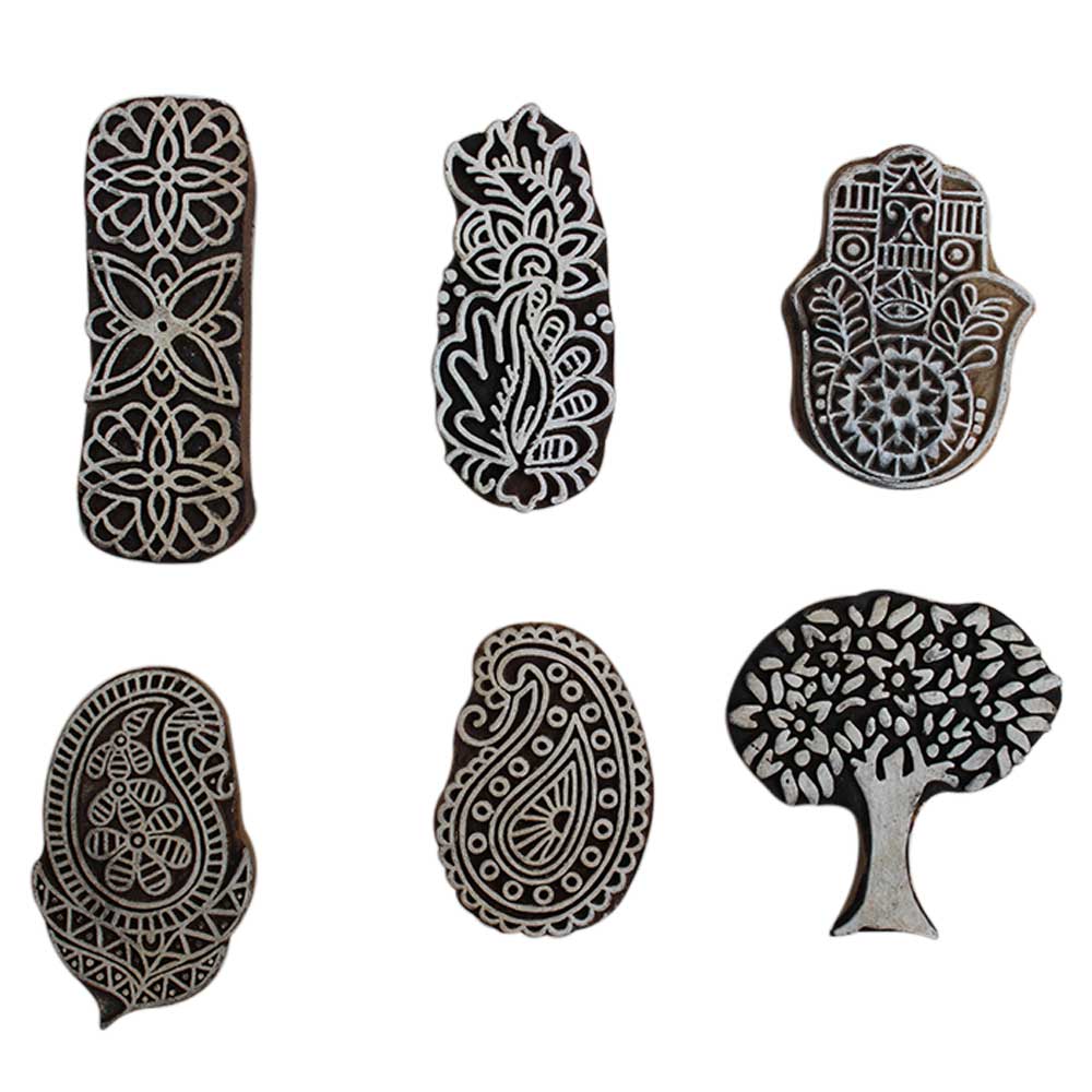 Set of 6 Piece New Mix Wooden Printing Block. Ideal for Using on Fabric, Paper, Canvas, etc. These Blocks can be use to Print with Oil Colors, Fabric Colors, Water Colors, Acrylic Colors and Vegetable Colors.