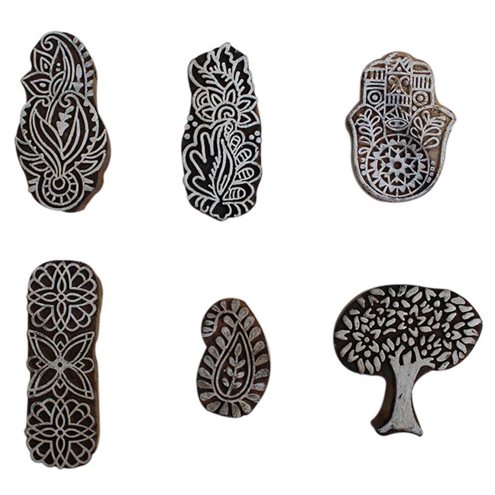 Set of 6 Piece New Mix Wooden Printing Block. Ideal for Using on Fabric, Paper, Canvas, etc. These Blocks can be use to Print with Oil Colors, Fabric Colors, Water Colors, Acrylic Colors and Vegetable Colors.