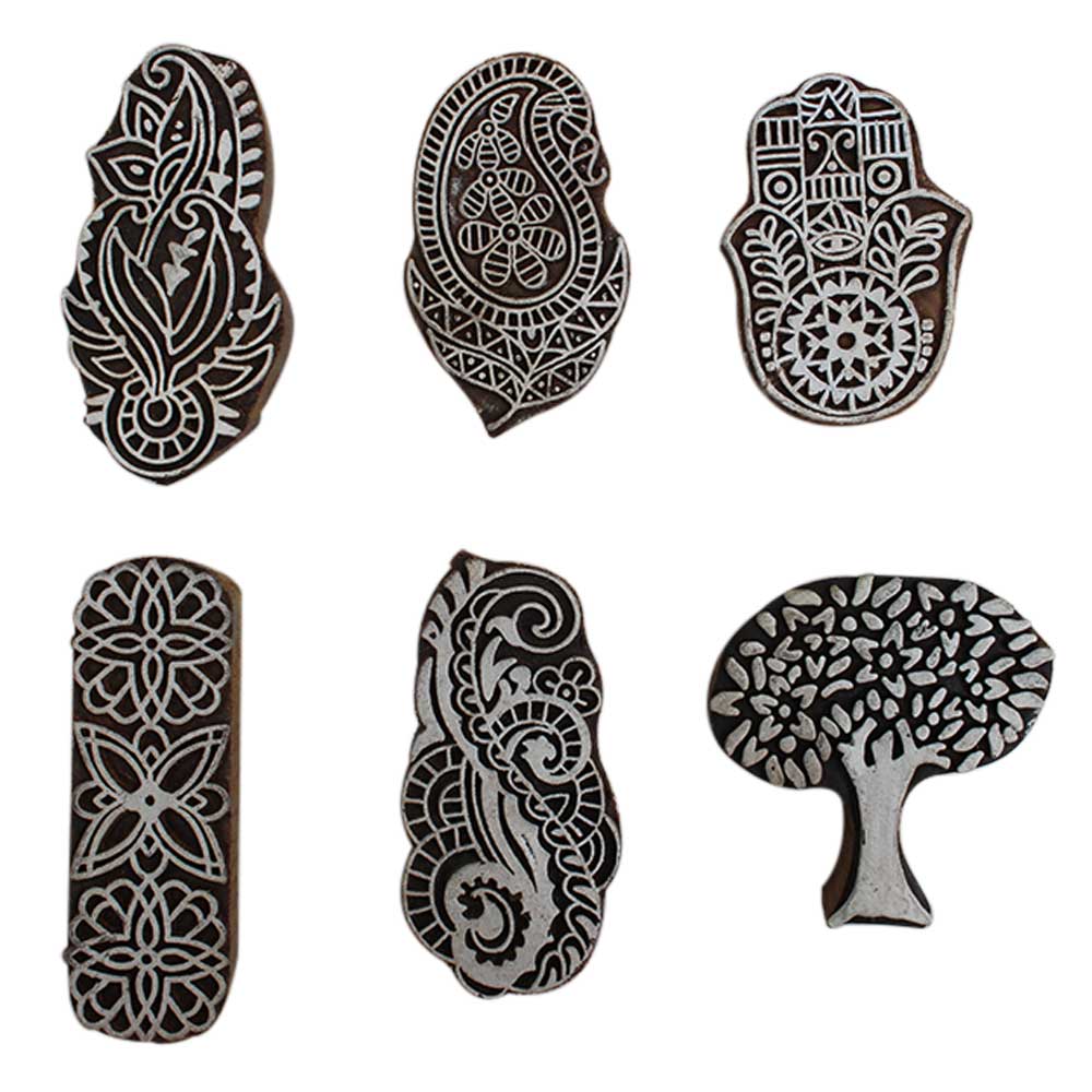 Set of 6 Piece New Mix Wooden Printing Block. Ideal for Using on Fabric, Paper, Canvas, etc. These Blocks can be use to Print with Oil Colors, Fabric Colors, Water Colors, Acrylic Colors and Vegetable Colors.