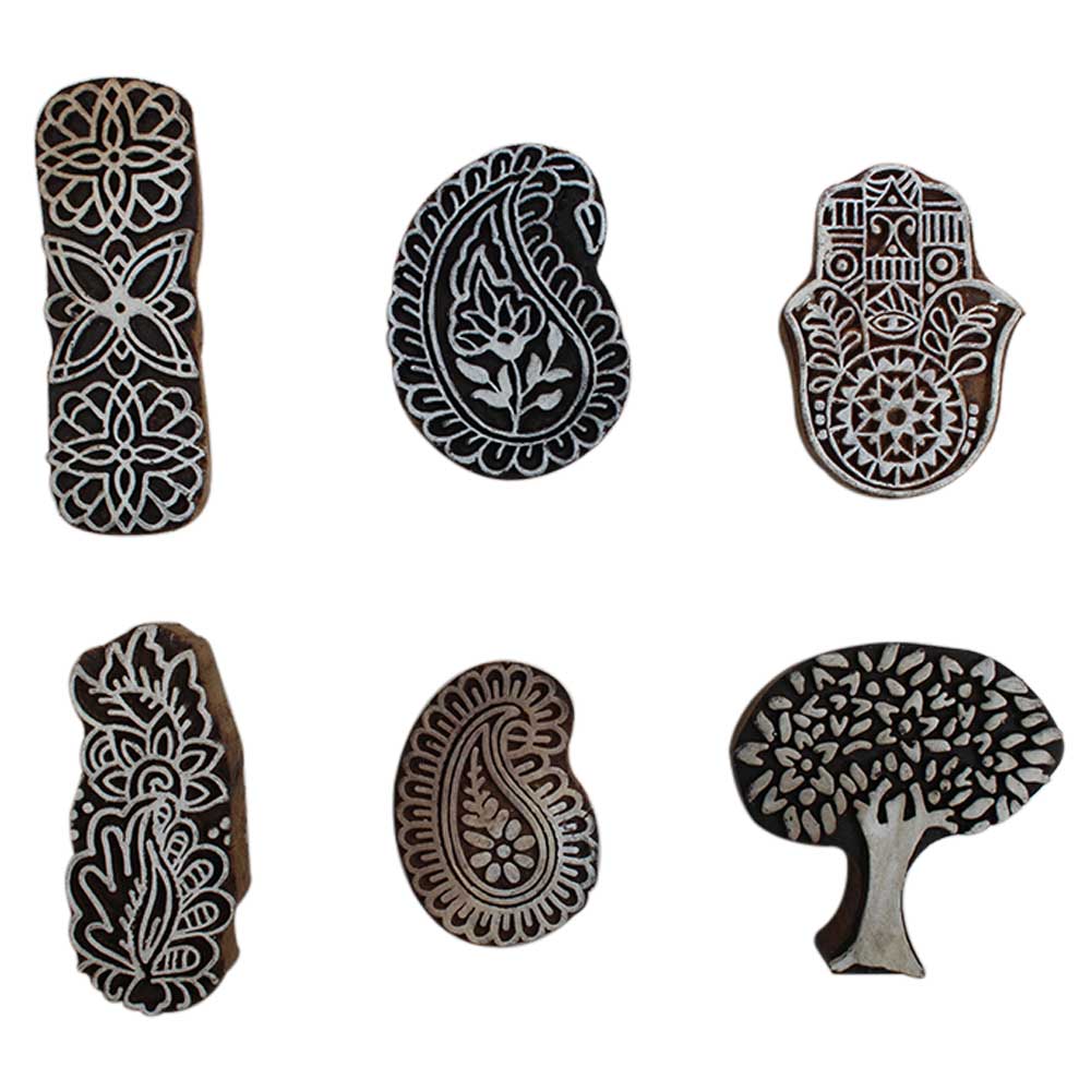 Set of 6 Piece New Mix Wooden Printing Block. Ideal for Using on Fabric, Paper, Canvas, etc. These Blocks can be use to Print with Oil Colors, Fabric Colors, Water Colors, Acrylic Colors and Vegetable Colors.
