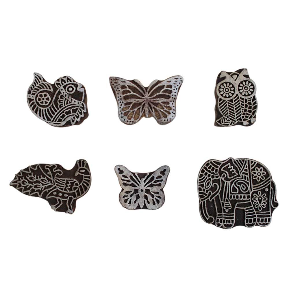 Set of 6 Piece New Mix Wooden Printing Block. Ideal for Using on Fabric, Paper, Canvas, etc. These Blocks can be use to Print with Oil Colors, Fabric Colors, Water Colors, Acrylic Colors and Vegetable Colors.